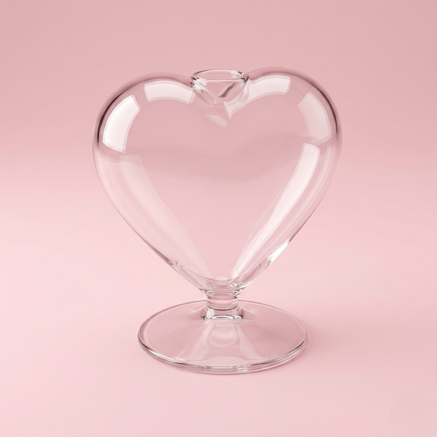 Mini vaso de vidro em formato de coração, ideal para decoração com flores ou arranjos, trazendo um toque romântico e sofisticado.