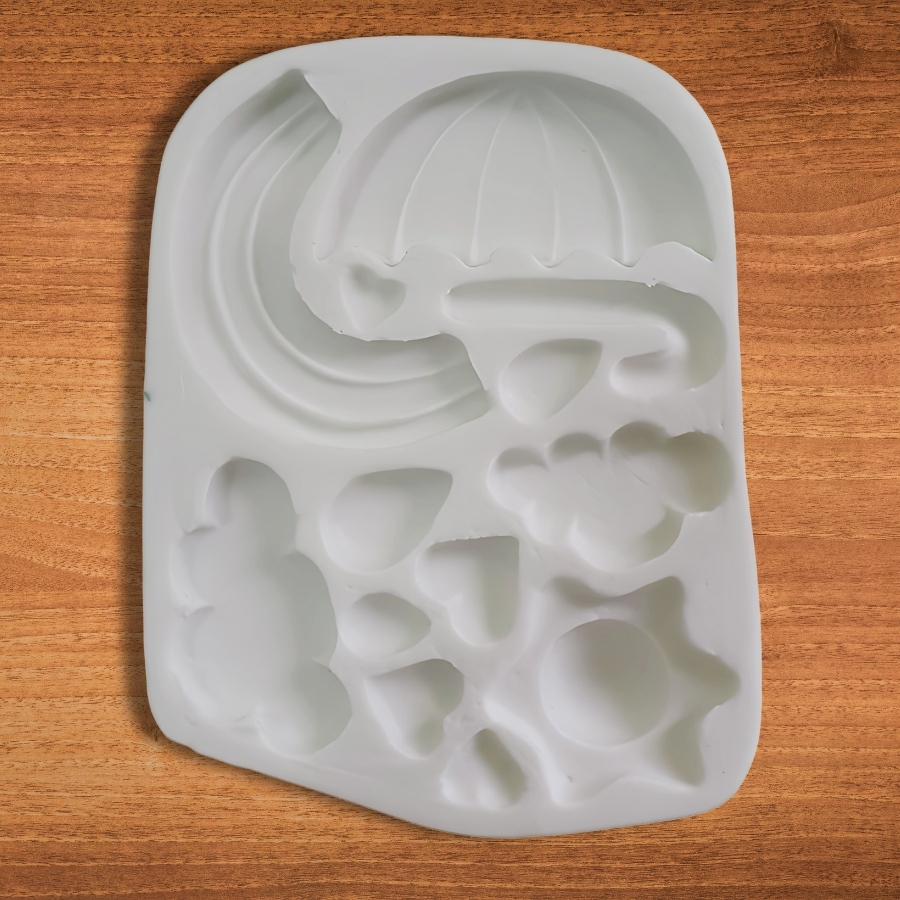 O Molde de Silicone Chuva de Amor - 9,5x12,5cm é ideal para quem deseja criar peças delicadas e encantadoras com o tema que é sinônimo de ternura. Com nuvens sorridentes, corações e outros elementos fofos, esse molde é perfeito para confeitaria, biscuit e lembrancinhas. Fabricado em silicone de alta qualidade, oferece flexibilidade, durabilidade e excelente definição nos detalhes.