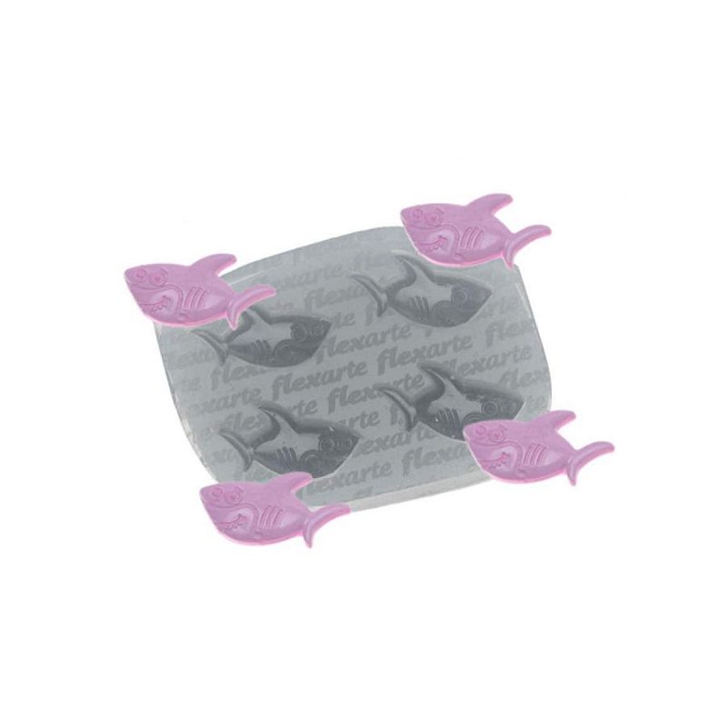 Molde de Silicone Quarteto Mini Tubarões Ref. 595 Flexarte Rizzo Confeitaria