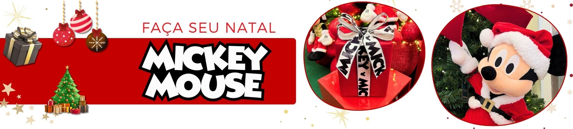 Encontre tudo para um Natal mágico: bola de Natal Mickey, árvore de Natal Mickey Disney, guirlanda do Mickey, fita decorada temática, além de enfeites para pendurar com orelhinhas icônicas, cores tradicionais e toques dourados.