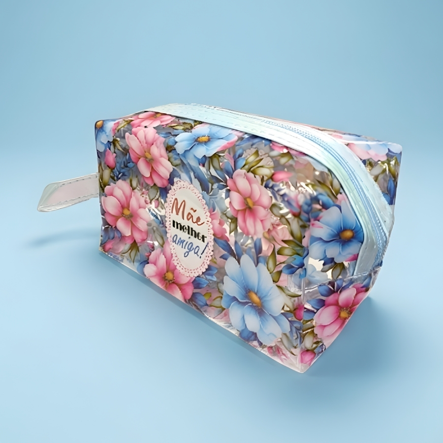 Compacta e funcional, é ideal para organizar maquiagem, itens de higiene ou pequenos objetos dentro da bolsa. O material transparente facilita a visualização do conteúdo, enquanto o design azul adiciona um toque moderno e elegante. Uma opção prática e afetiva para surpreender em qualquer ocasião.