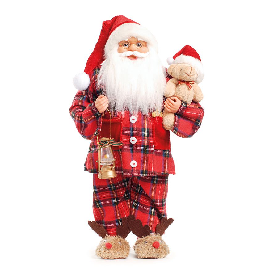 Noel com Pijama Xadrez Segurando Urso 45cm - 01 unidade - Cromus Natal - Rizzo Embalagens