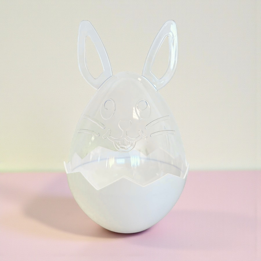Fabricada com materiais leves e resistentes, a cesta possui formato de ovo e detalhes de coelho branco, medindo 15x12x12cm. É perfeita para decorações pascais, lembranças, montagem de kits de presente ou como destaque em cenários temáticos infantis e artesanais.
