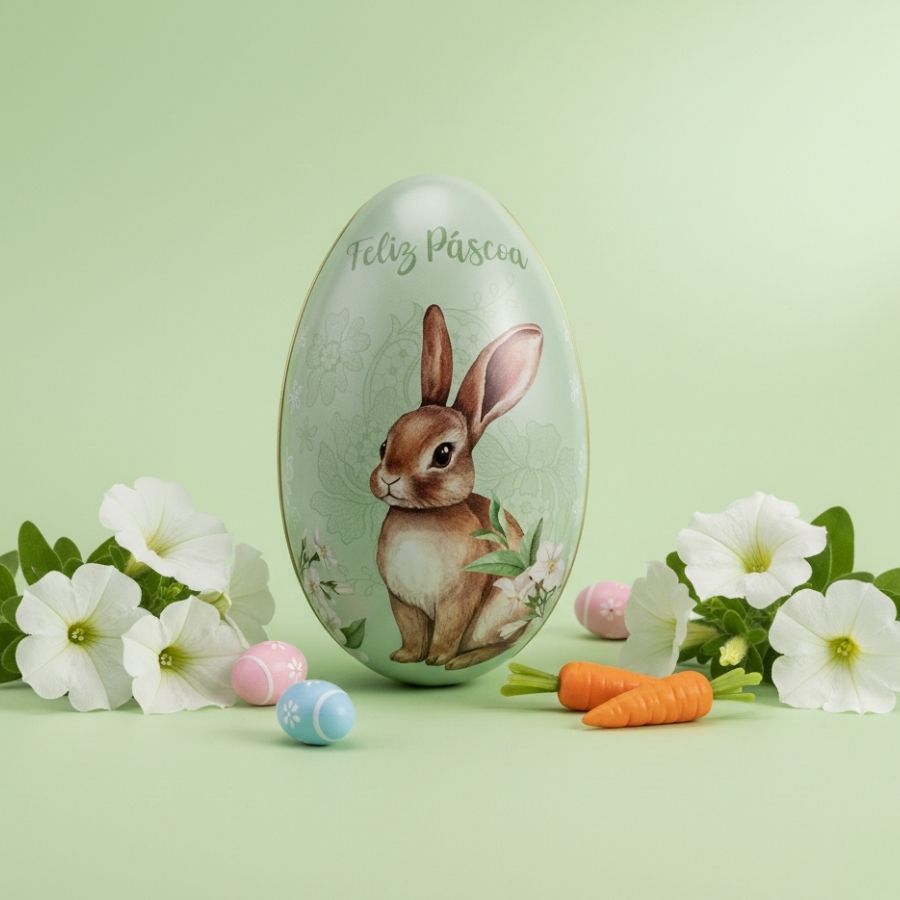 Este ovo de metal se destaca pelo acabamento refinado e pela estrutura resistente, garantindo durabilidade e excelente apresentação. Sua versatilidade permite ser utilizado como embalagem decorativa para chocolates, doces, lembrancinhas e pequenos presentes, além de compor cenários temáticos, vitrines comerciais e centros de mesa. O design exclusivo com coelho floral agrega valor estético ao trabalho artesanal ou profissional, transformando simples composições em peças encantadoras e altamente atrativas para o consumidor final.