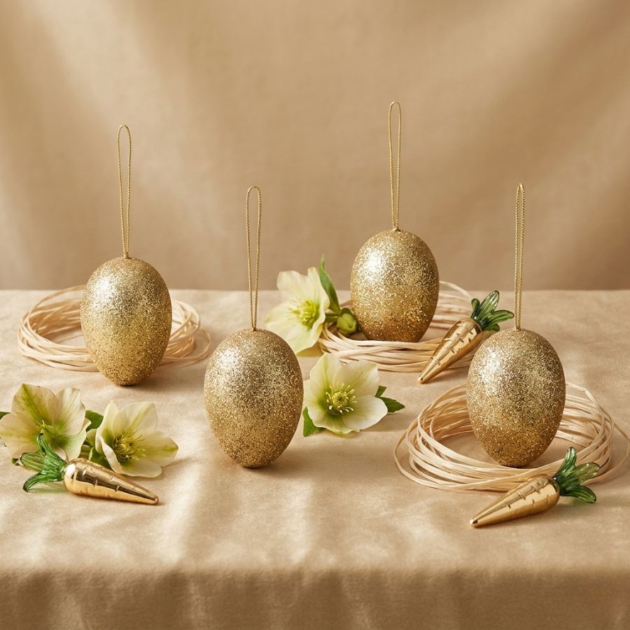 Adicione um toque de luxo à sua Páscoa com os Ovos Decorativos no Saquinho Glitter Ouro. Embalados com brilho dourado, são a escolha perfeita para presentear ou decorar sua casa com elegância festiva.