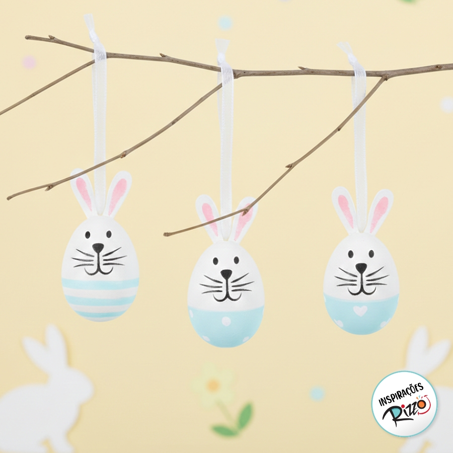 Mini ovos decorativos com estampa de coelho
