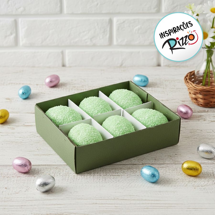 Ovo de páscoa com para pendurar na cor verde com granulado