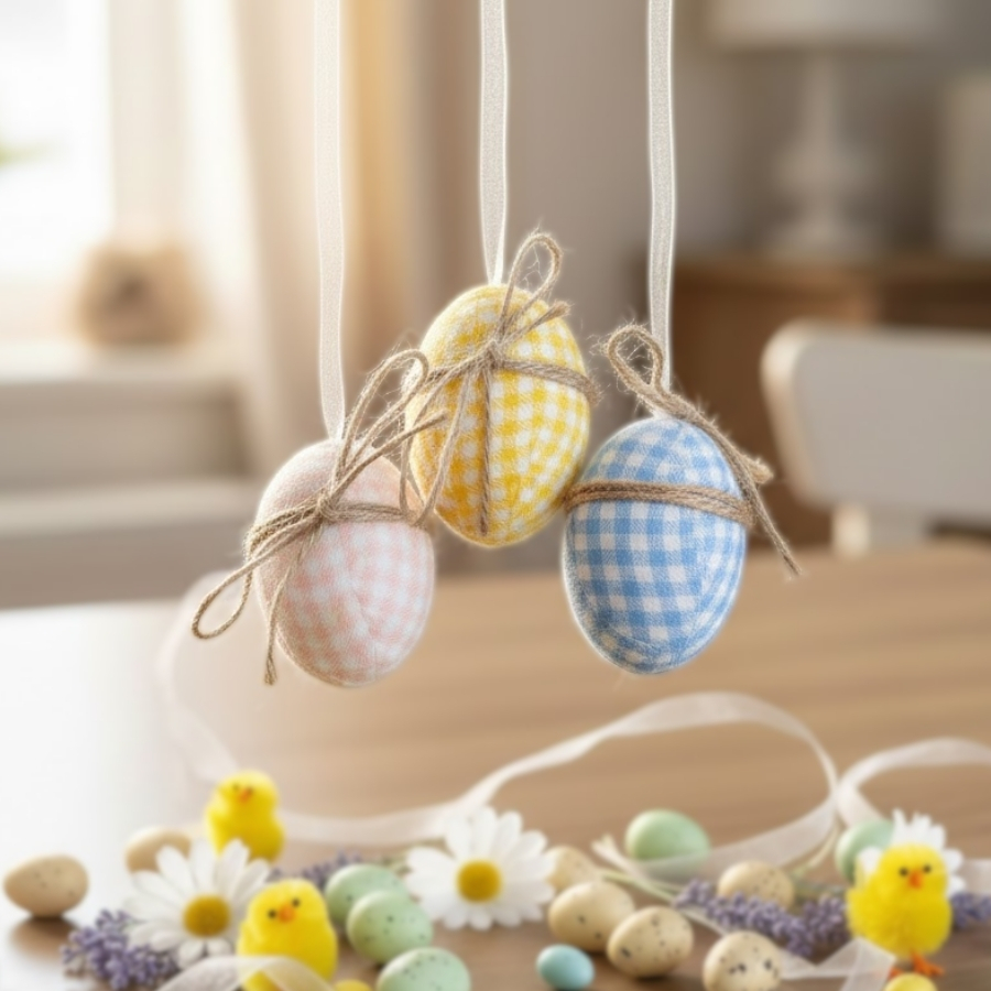 Os Mini Ovos de Páscoa Decorativos com Cordão – Xadrez Amarelo, Rosa e Azul – 6x4x4cm são ideais para composições temáticas delicadas e criativas. Com estampa xadrez nas cores amarelo, rosa e azul, esses mini ovos ajudam a criar uma decoração de Páscoa alegre e bem organizada, valorizando pequenos detalhes no ambiente.