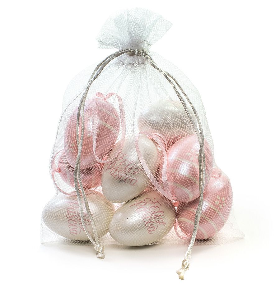 Ovo de Páscoa Decorativos no Saquinho Branco e Rosa Perolado Sortidos - 9 unidades - Cromus Páscoa - Rizzo Embalagens