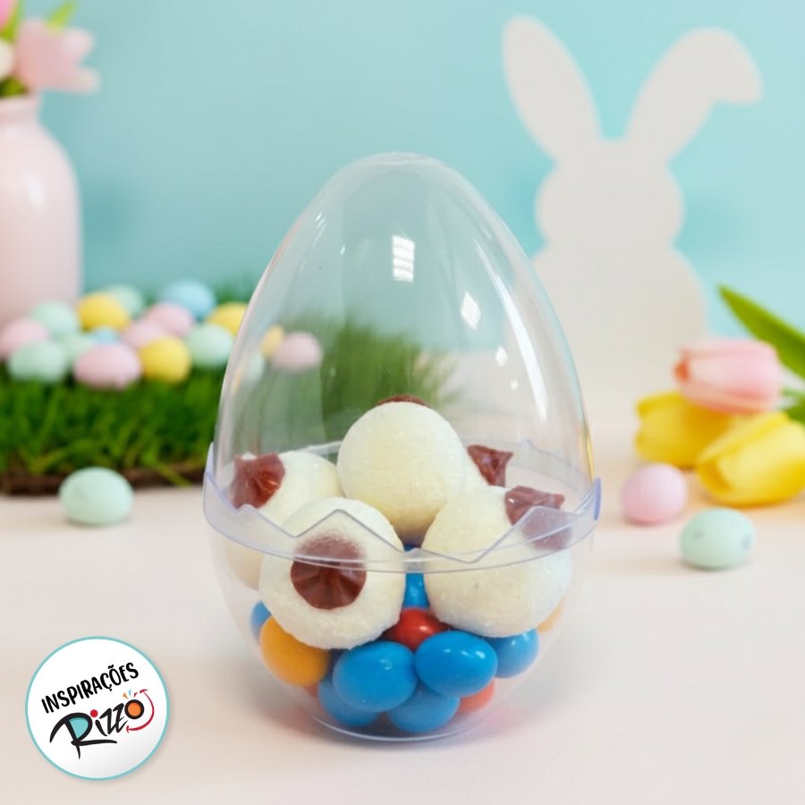 Fabricado em acrílico resistente, o Ovo Transparente garante proteção e durabilidade, sendo perfeito para compor cestas, kits personalizados e decorações temáticas. Sua estrutura leve e segura torna-o uma opção prática para diversas ocasiões.