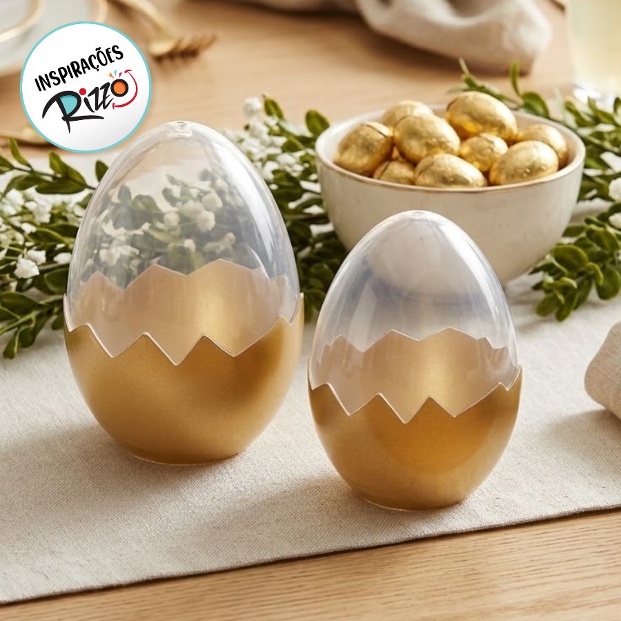 Ovo Transparente Ouro em Acrílico - 01 unidade - Cromus Páscoa - Rizzo Embalagens​