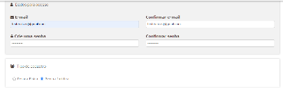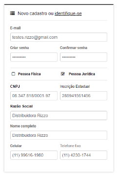 Passo1: Após adicionar os produtos no carrinho e escolher forma de envio ao tentar finalizar a compra o site irá pedir o e-mail de acesso ao preencher com seu e-mail não cadastrado será direcionado a página para criar seu perfil. Nesta categoria deve realizar seu perfil preenchendo todas as informações solicitadas, o cadastro pode ser de pessoa física ou jurídica.