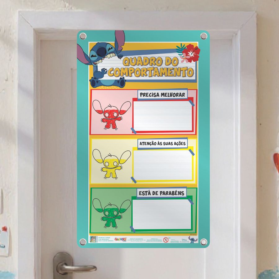 Além do apelo decorativo, o Painel Decorativo em EVA inspirado no Stitch Disney – Quadro do Comportamento se destaca pela utilidade no dia a dia educacional. O modelo conta com três espaços para preenchimento, identificados como “Precisa melhorar”, “Atenção às suas ações” e “Está de parabéns”, facilitando o acompanhamento do comportamento de forma objetiva e visual. Essa organização contribui para o diálogo em sala e para o desenvolvimento da responsabilidade e da convivência. O formato permite atualização constante, tornando o painel funcional para diferentes turmas e propostas pedagógicas. Inspirado no Stitch Disney, o produto une decoração temática e apoio pedagógico em um único item. Sonhe, realize e comemore avanços diários com criatividade e a magia do Stitch Disney.
