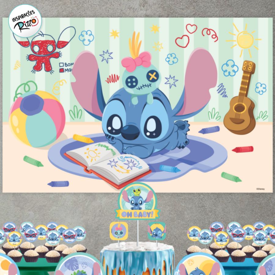Painel decorativo em TNT impresso com tema Stitch Baby