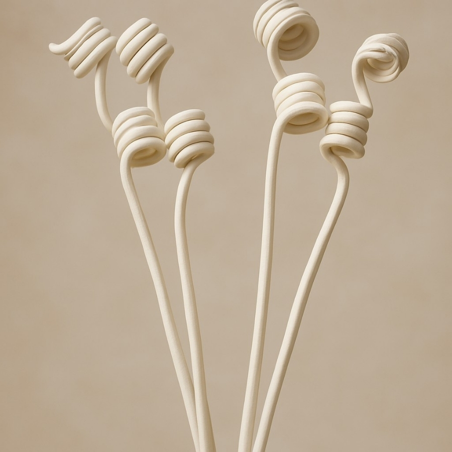Perfeitas para lembrancinhas aromáticas, uso residencial, kits de presente, decoração de eventos e aromatizadores personalizados, essas varetas espirais combinam funcionalidade e estética, realçando a fragrância e o visual do ambiente.