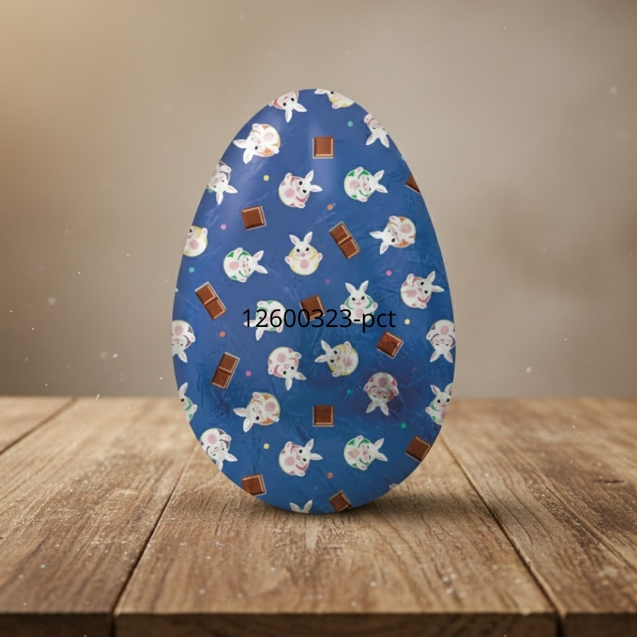 Papel chumbo para embalagem de chocolates, linha Felicita, na cor azul, com dimensões de 43,5x58,5cm, utilizado para proteção e acabamento de produtos de chocolate.