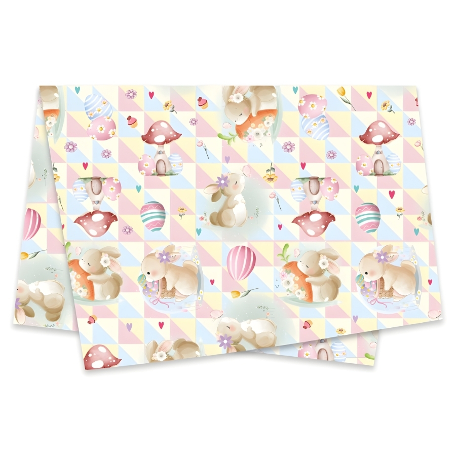 Com dimensões de 50x70cm, oferece excelente cobertura para embalar produtos de médio porte, forrar caixas e criar composições decorativas. Seu material leve e maleável facilita o manuseio, permitindo dobras e acabamentos personalizados. A estampa temática contribui para uma apresentação encantadora, alinhada às coleções especiais de Páscoa e datas comemorativas.