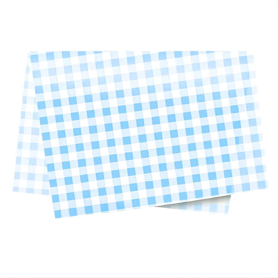 O Papel Seda Decorado Xadrez - 50x70cm - Azul Claro é utilizado para embalar, forrar e decorar chocolates, presentes e kits temáticos. Produzido em papel seda estampado, oferece acabamento decorativo e proteção superficial. Comercializado em pacote com 50 unidades, é ideal para uso profissional e revenda.
