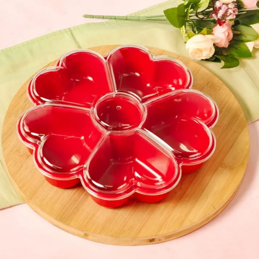 Petisqueira em acrílico, com o formato de flor de corações e vermelho sólido