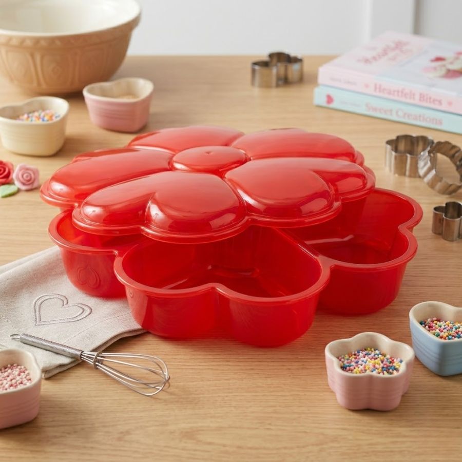 Petisqueira em acrílico, com o formato de flor de corações e vermelho translucido