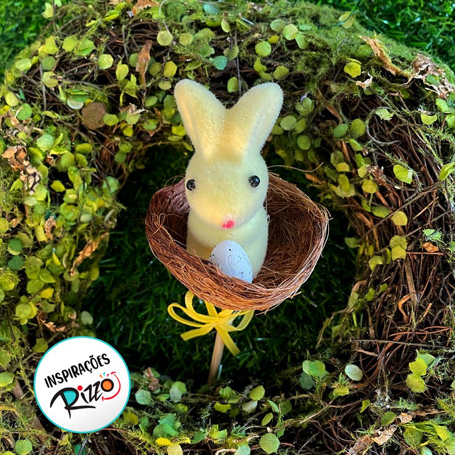Pick Decorativo de Páscoa, ninho com coelhinho amarelo e ovinho