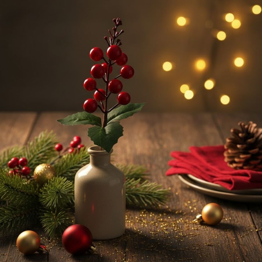 Fabricado com material resistente e acabamento realista, o pick proporciona versatilidade para artesãos, floristas e decoradores que desejam enriquecer peças manuais ou produções profissionais. Ele pode ser usado em centros de mesa, arranjos naturais ou artificiais, cestas decorativas, toalhas temáticas, embalagens de presentes e muito mais. Sua estética tradicional com folhagens verdes e frutinhas vermelhas valoriza o clima natalino e agrega sofisticação às composições.