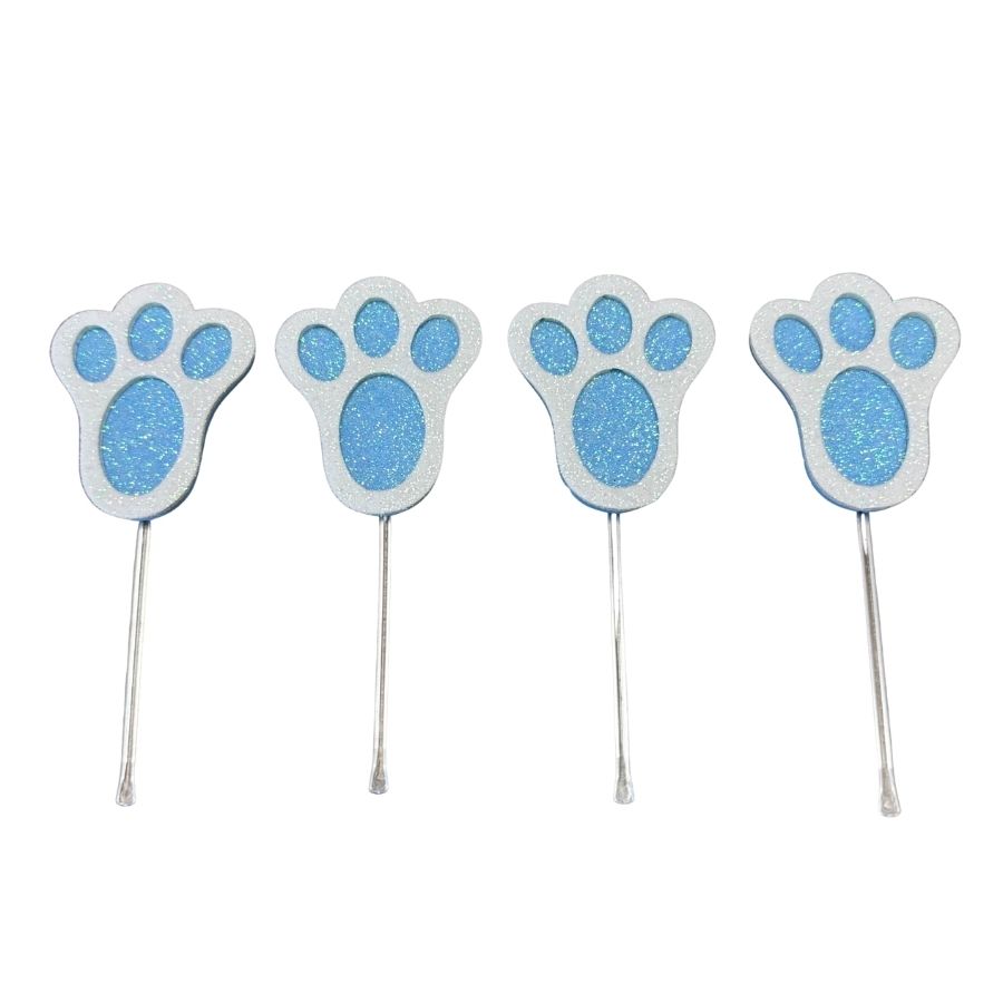 O Pick Decorativo Pata de Coelho Branco e Azul com Glitter é ideal para dar um toque divertido e brilhante à decoração da sua festa. O kit contém 8 picks em EVA, com a silhueta da pata de coelho nas cores branco e azul, revestidos com glitter que adiciona brilho e charme aos seus doces, cupcakes, arranjos e lembrancinhas.