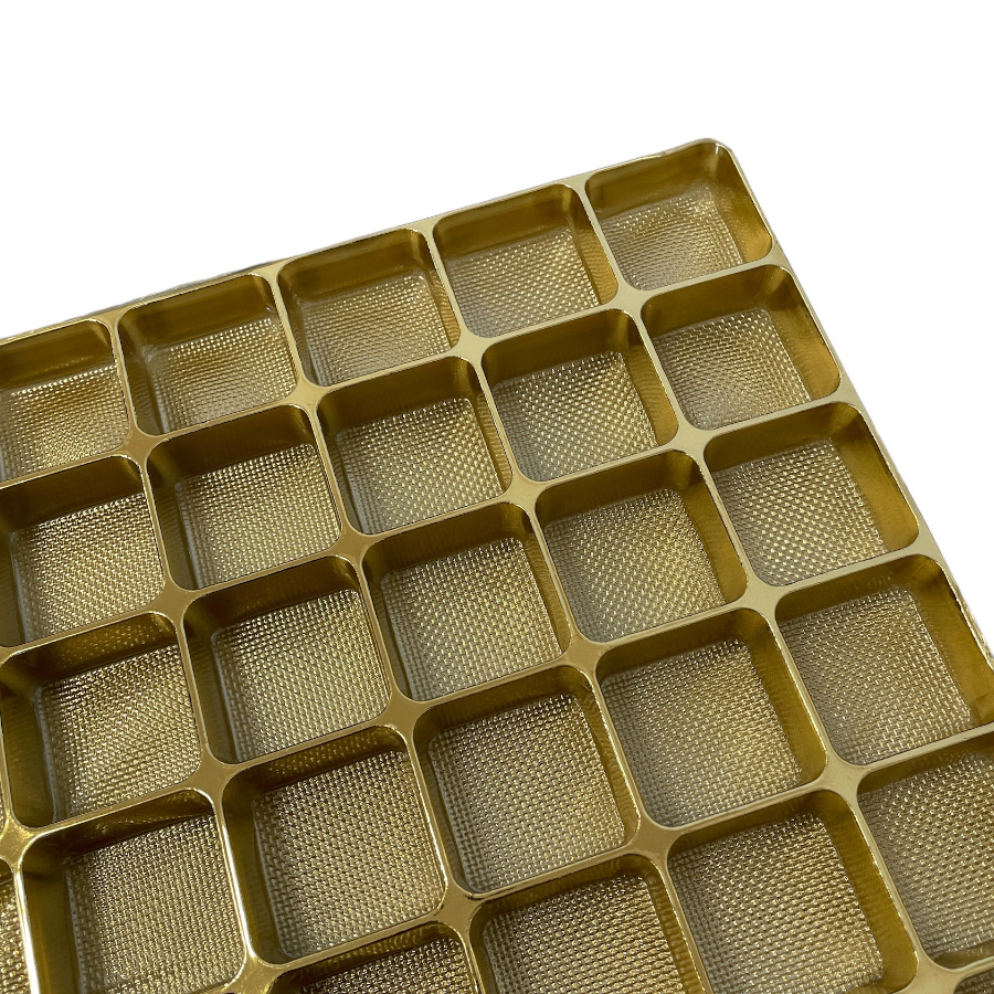 Placa Berço Premium para doces, com 54 cavidades, na cor ouro