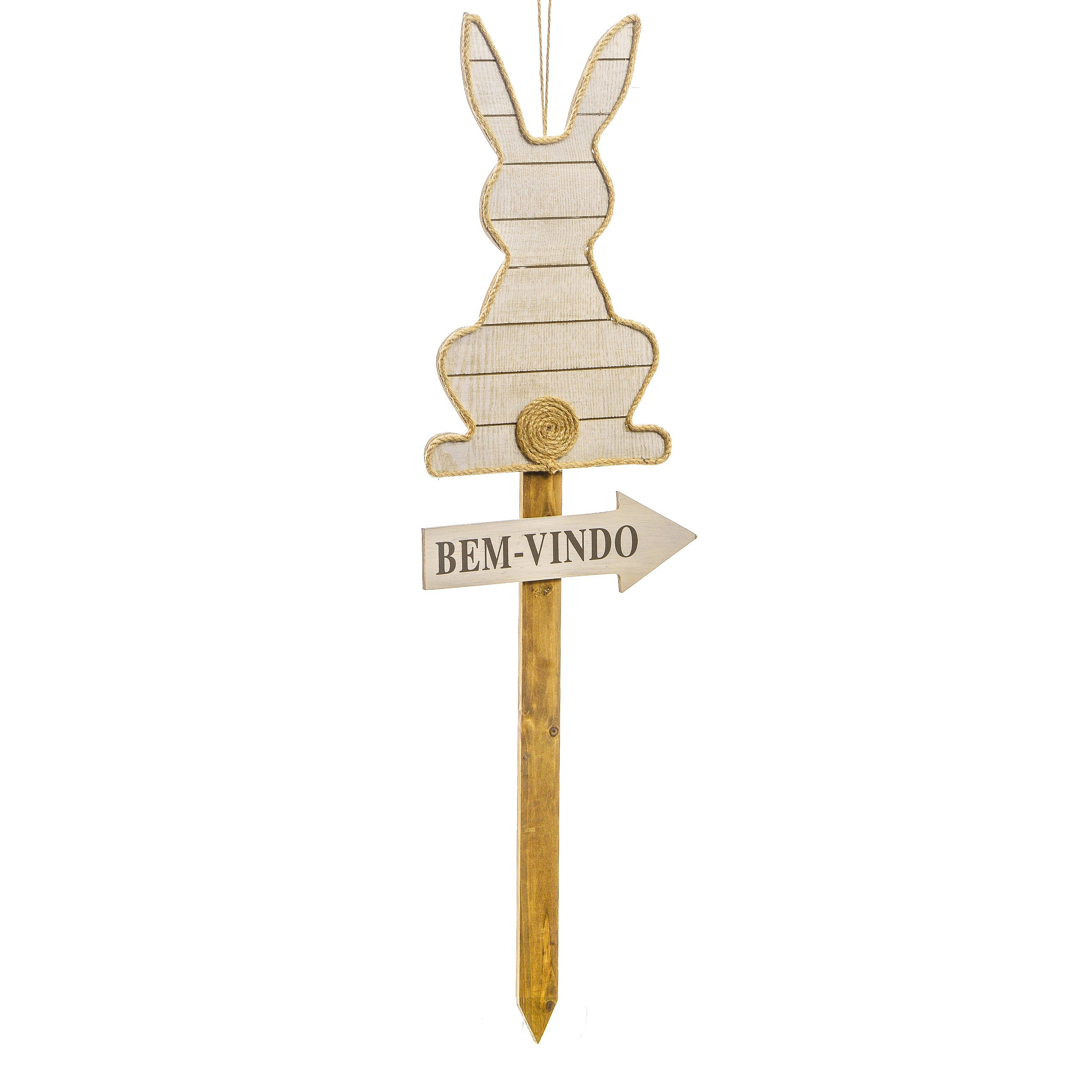 Placa Decorativa Coelho com Pompom Corda Bem Vindo 91cm - 01 unidade - Cromus Páscoa - Rizzo Embalagens