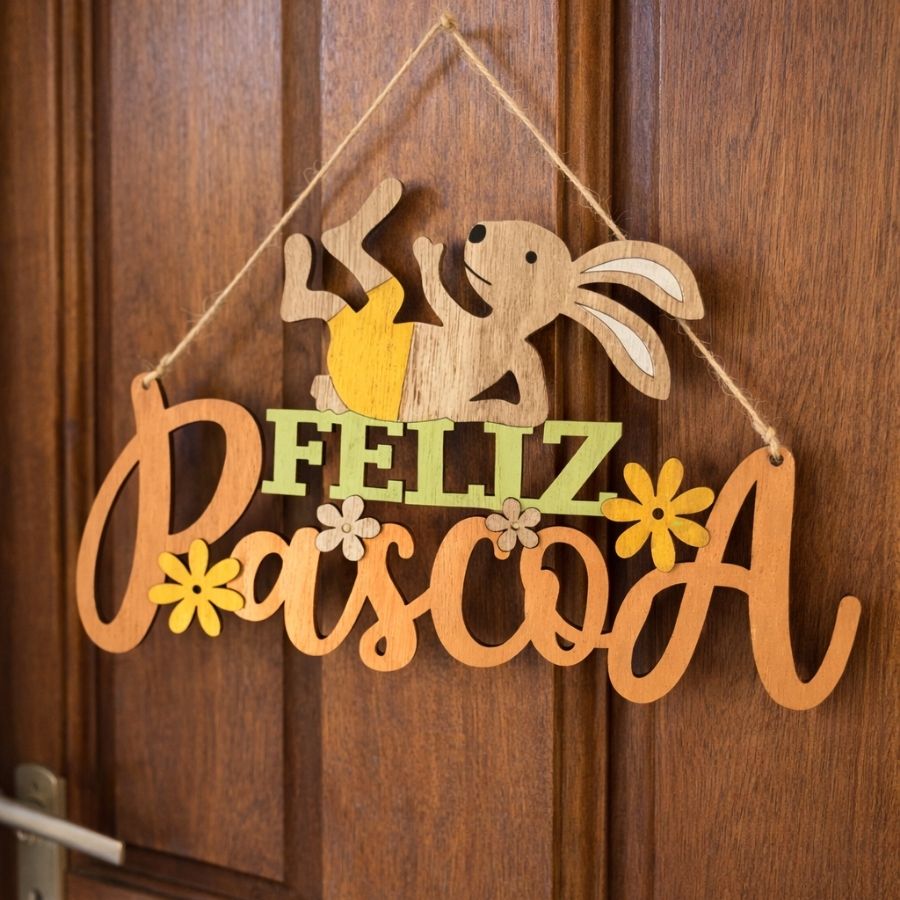 Placa de Feliz Páscoa decorativa