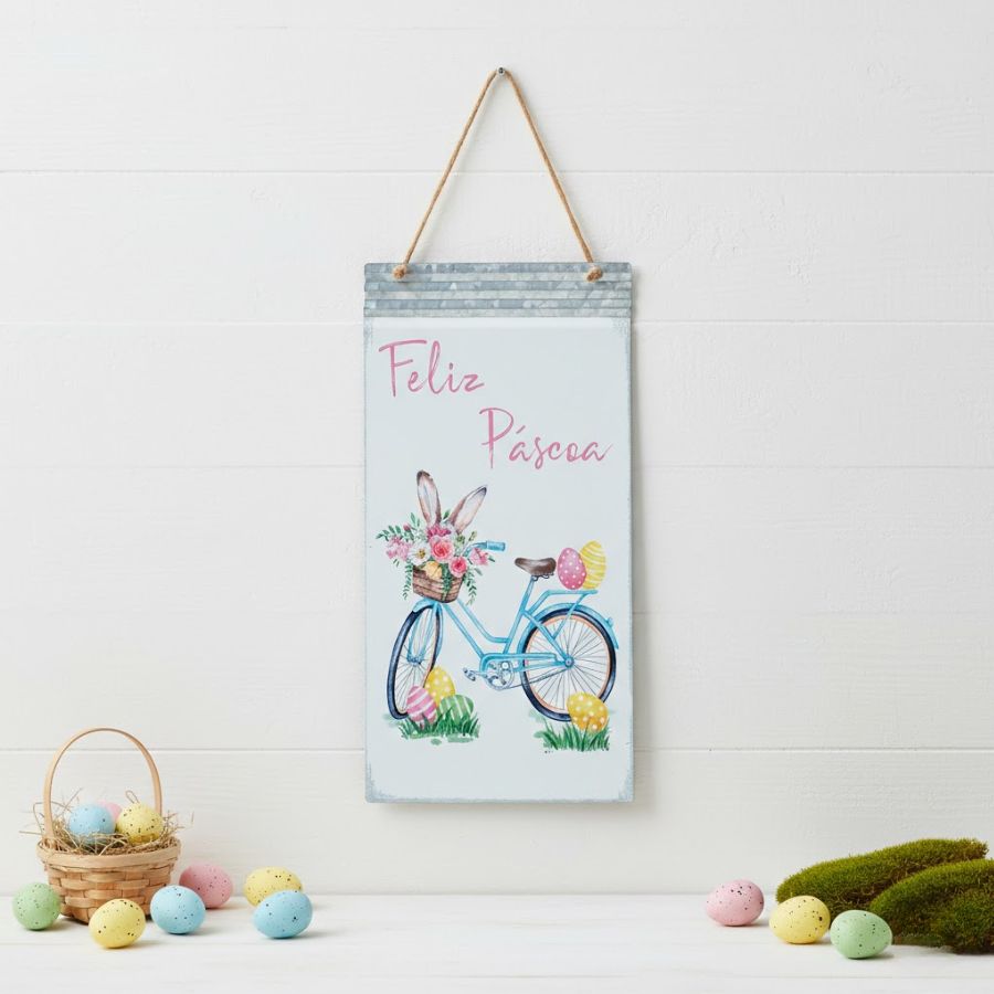 Linda placa de metal com o tema de páscoa perfeita para ambientes internos e também externos desde que não tenha exposição exagera ao sol e à umidade, ela manterá suas cores vivas por muito mais tempo!