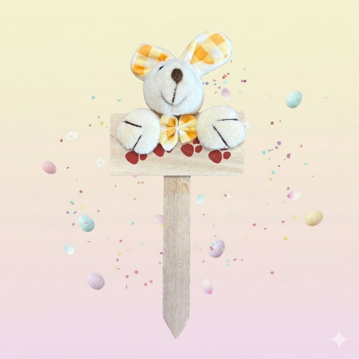 A Plaquinha de Páscoa em MDF com coelho xadrez é um enfeite encantador para compor a decoração de Páscoa com um toque alegre e acolhedor. Na cor laranja, a peça traz um coelhinho apoiado na parte superior, com orelhinhas em estampa xadrez e um laço decorativo, criando um visual delicado e temático.