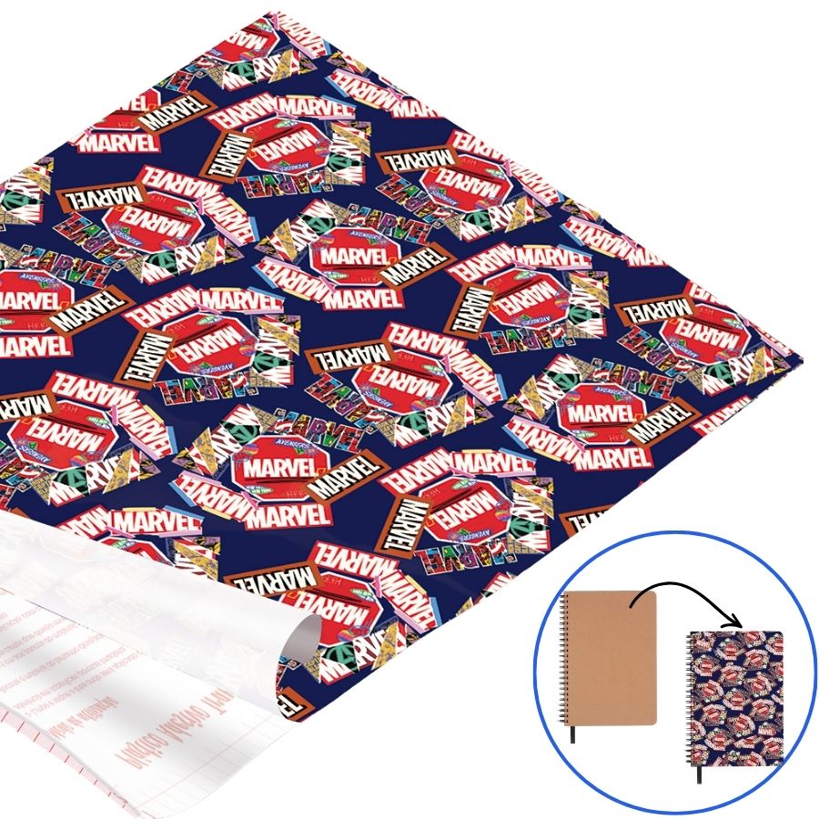 Plastico adesivo com estampa inspirada em Marvel.