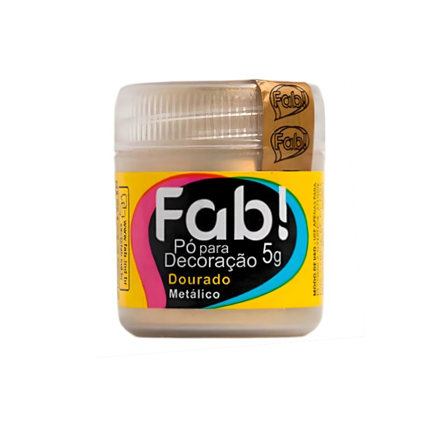 O pó para decoração dourado faz parte da linha de metálicos da Fab! E é irrepetível em outra marca. É conhecido entre as confeiteiras como o dourado verdadeiro. Sua cor é a mais viva e radiante comparado ao dourado rosê, dourado egípcio, dourado antigo. Pode ser aplicado a seco em camadas e superfícies finas, com auxílio de um pincel de cerdas macias. Também pode ser diluído na Solução Alcoólica Neutra da Fab! (desenvolvida especialmente para esse tipo de uso) e utilizada na bombinha ou aerógrafo. É indicado para decorar superfícies finas e decorações não alimentícias.