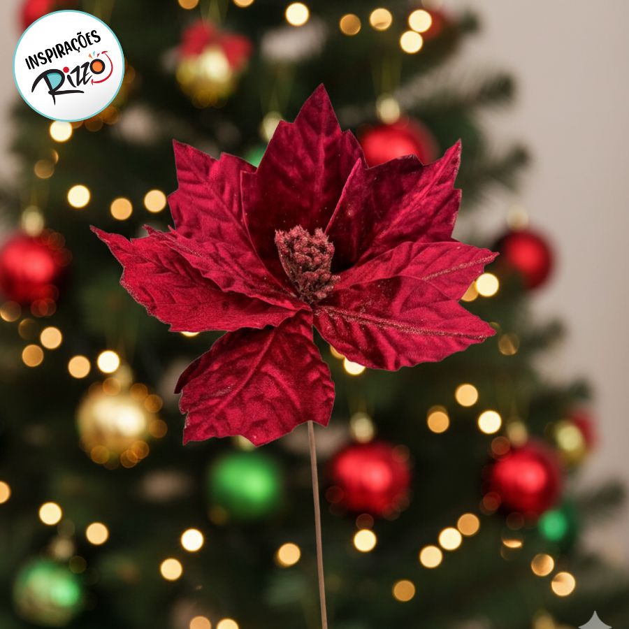 Com dimensões de 40x33x14cm, a flor poinsétia oferece volume e destaque às decorações, harmonizando facilmente com outros enfeites e criando um efeito natalino vibrante. Seu acabamento sofisticado garante durabilidade e mantém o charme em várias temporadas.