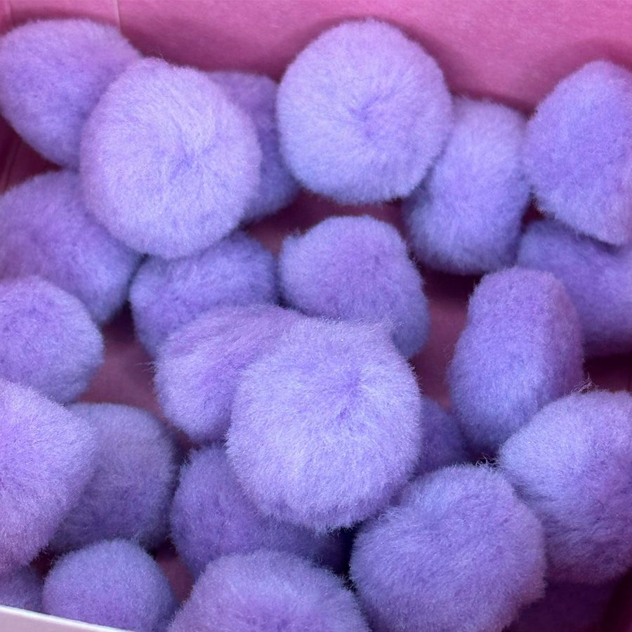 pompons de 20mm na cor lilás, pacote com 25 unidades