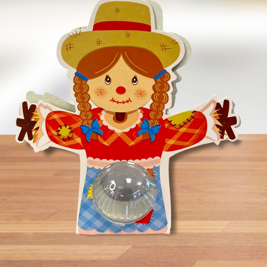 Porta brigadeiro com 1 cavidade, com blister, tema espantalha, tamanho 12,5x2x13,3cm, ideal para lembrancinhas e doces em Festa Junina.