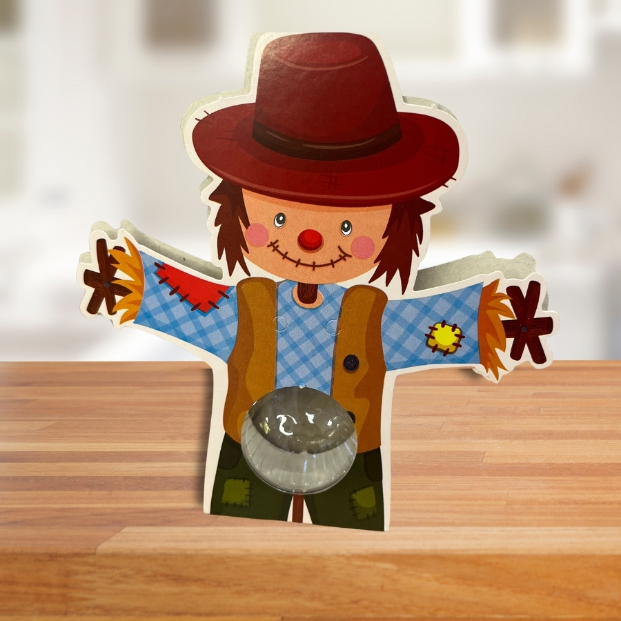 Porta brigadeiro com 1 cavidade, com blister, tema espantalho, tamanho 12,5x2x13,3cm, ideal para lembrancinhas e doces em Festa Junina.