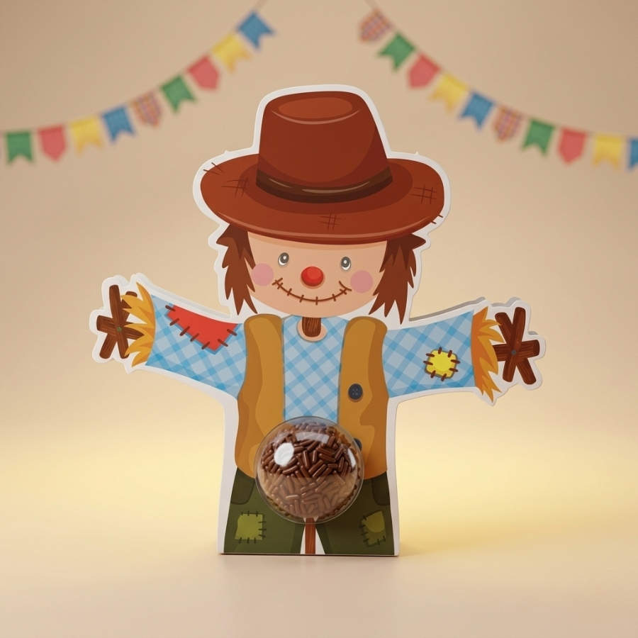 O Porta Brigadeiro 1 Cavidade com Blister Festa Junina Espantalho com 5 Unidades é ideal para destacar doces individuais com charme, organização e um toque temático. Com estampa de espantalho, ele traz um visual divertido, colorido e típico das festas juninas, perfeito para valorizar brigadeiros, beijinhos e outras guloseimas. Indicado para lembrancinhas, mesas decoradas, arraiais e eventos escolares, é uma escolha prática e encantadora.