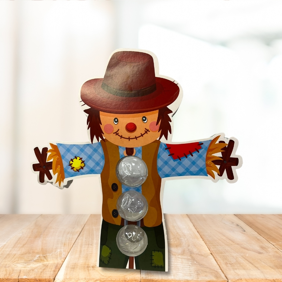 Porta brigadeiro com 3 cavidades, blister incluso, tema espantalho, tamanho 22,5x2,5x23,5cm, ideal para doces e lembrancinhas de Festa Junina.