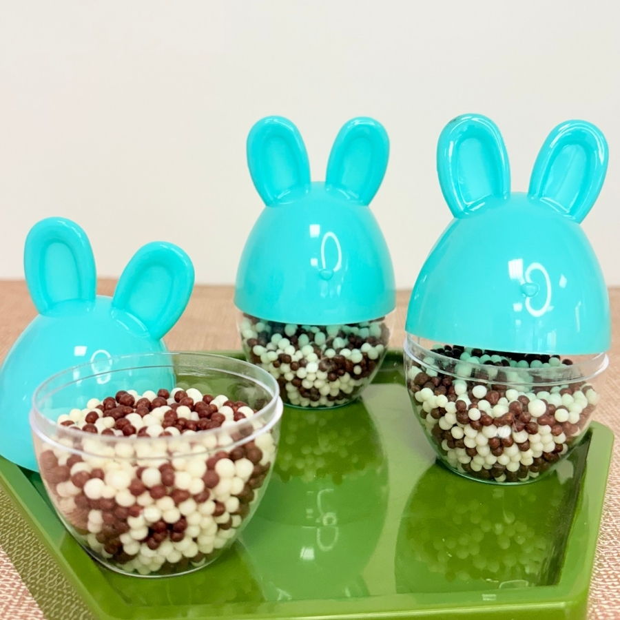 Com 9x5,5cm, esse potinho é compacto e ideal para armazenar doces, mini ovos de chocolate, confeitos e lembrancinhas. Sua cor Tiffany, sofisticada e moderna, combina perfeitamente com decorações festivas, tornando-o uma excelente opção para montar kits personalizados ou lembrancinhas para amigos, familiares e clientes.