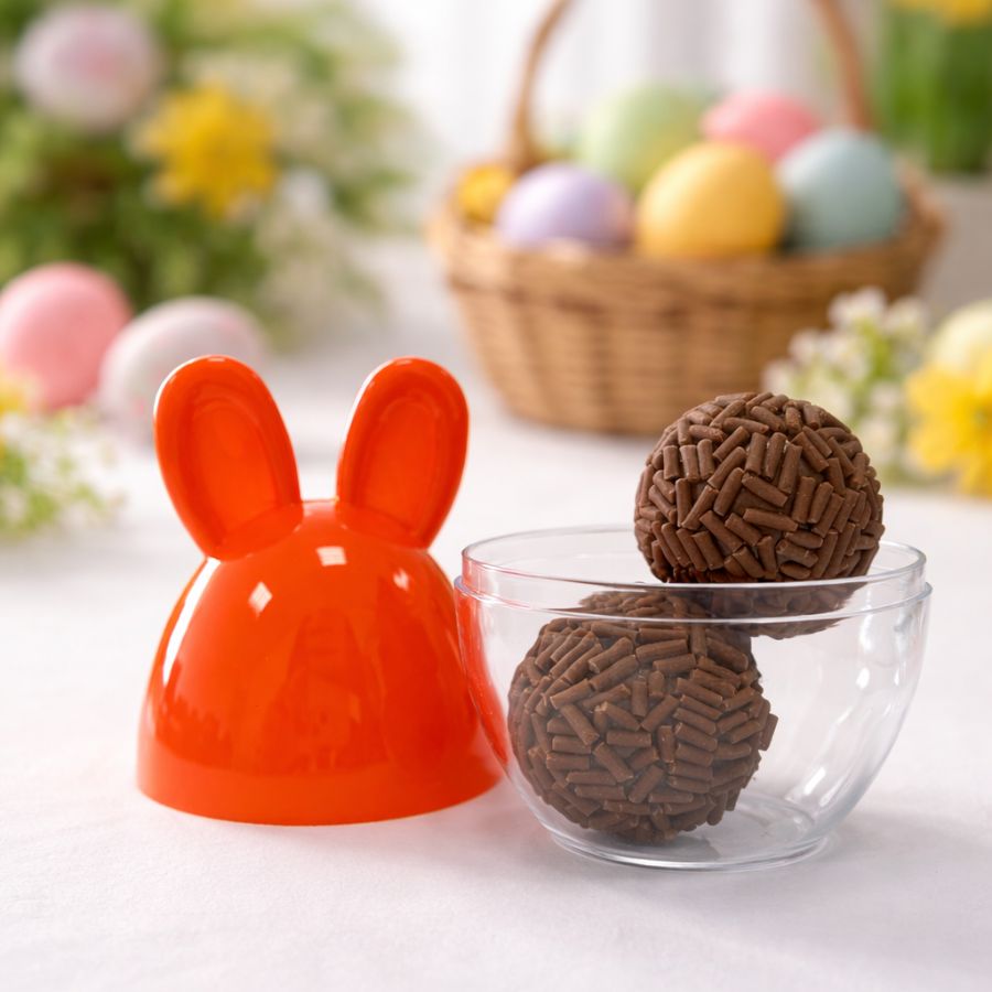 Perfeito para montar lembrancinhas de páscoa, kits personalizados e brindes escolares, o potinho com orelha de coelho valoriza a apresentação dos doces e deixa qualquer festa de páscoa ainda mais especial. Seu visual lúdico combina perfeitamente com decoração temática de páscoa, especialmente em mesas com coelhinho da páscoa e elementos coloridos.