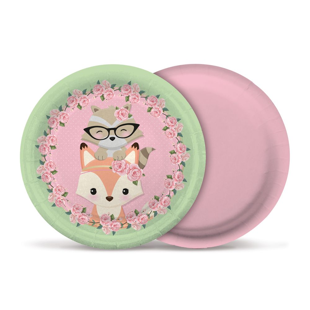 Utilize os Pratos de Papel Bosque dos Sonhos para colocar na mesa de comes e bebes ou na mesa principal para completar a decoração.