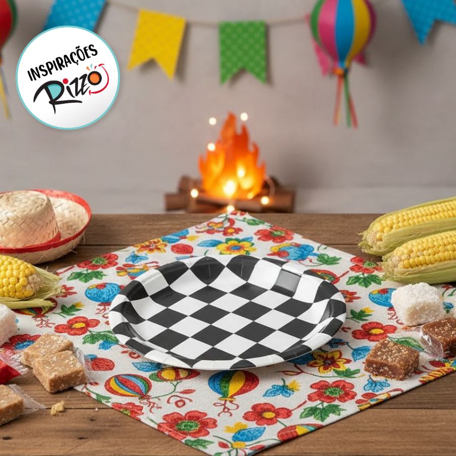 O Prato de Papel Redondo Biodegradável Xadrez Preto - 18cm é uma excelente opção para festas com temática elegante e ecológica, garantindo praticidade e sustentabilidade.