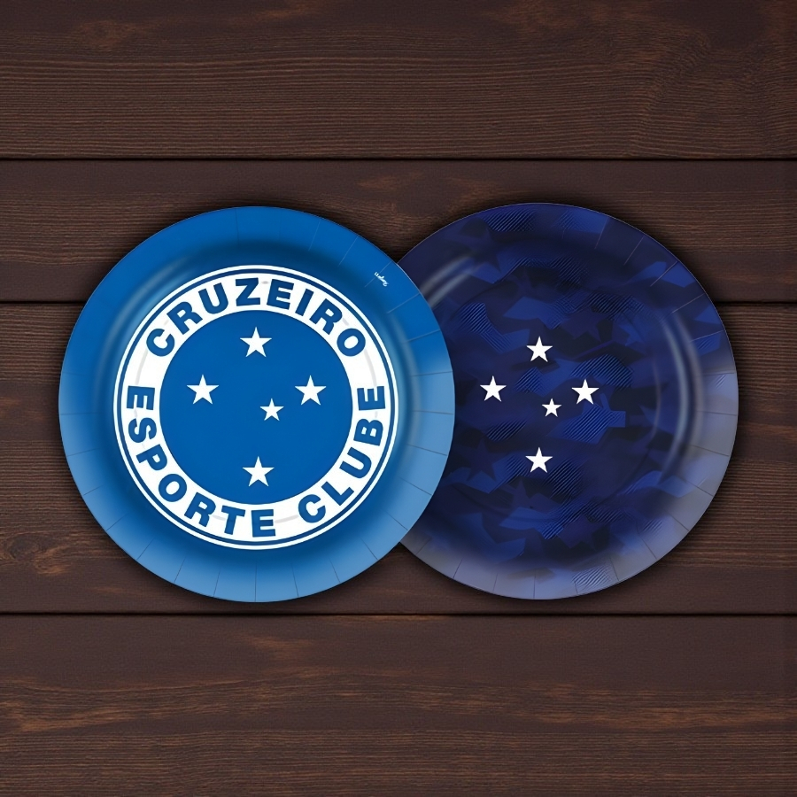 O Prato de Papel Redondo - Cruzeiro - 18x18cm é ideal para torcedores que desejam levar a paixão celeste para festas e eventos temáticos. Perfeito para aniversários, reuniões ou encontros de torcedores, ele transforma a mesa em um espaço divertido e personalizado, reforçando a identidade do Cruzeiro com praticidade.