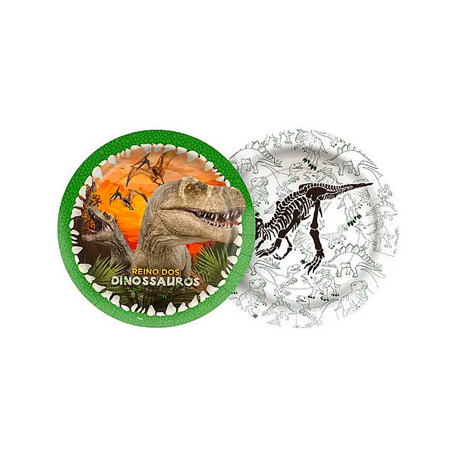 Explore a diversão pré-histórica com o Prato de Papel Redondo Dinossauro! Perfeito para refeições e petiscos em festas temáticas, este prato colorido e resistente adiciona um toque jurássico à sua mesa.