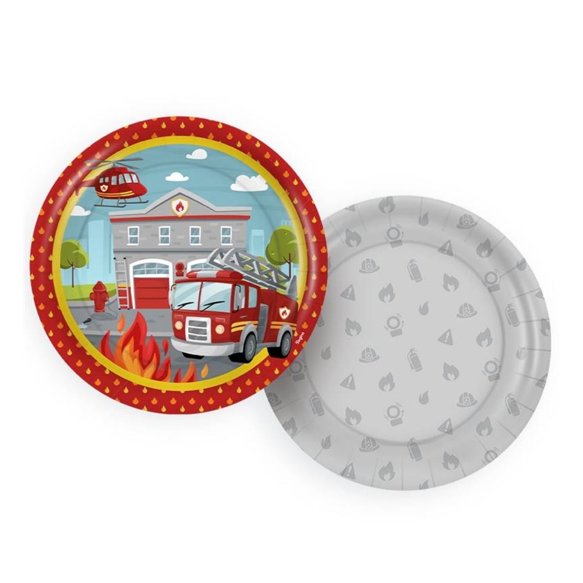 O Prato de Papel Redondo – Bombeiros – 18cm (8 unidades) é a escolha ideal para completar a mesa de uma festa temática cheia de estilo. Com estampa vibrante inspirada no universo dos bombeiros, ele traz cores fortes, elementos característicos e um visual que deixa tudo mais divertido e temático. Feito em papel resistente, é perfeito para servir doces, salgados, pedaços de bolo e lanches variados, garantindo praticidade sem perder o charme da decoração.