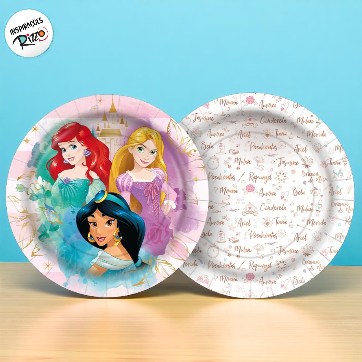 Prato de Papel Redondo inspirado nas Princesas Disney, perfeito para servir com estilo e encantar os convidados durante a festa. Com design vibrante e delicado, traz as personagens clássicas das Princesas Disney em impressão de alta resolução, tornando a decoração da mesa ainda mais encantadora.