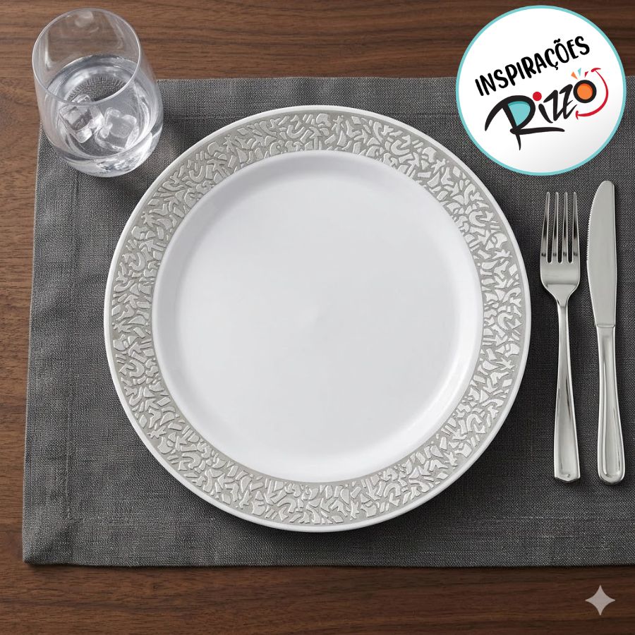 Prato de sobremesa com detalhes vazados e acabamento prateado, ideal para compor mesas elegantes com um toque refinado.