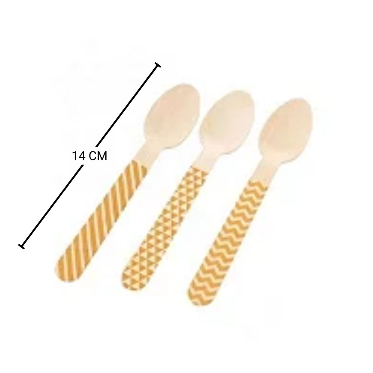 Pacote Colher Madeira - Chevron Dourado - 14cm - 10 unidades - Rizzo